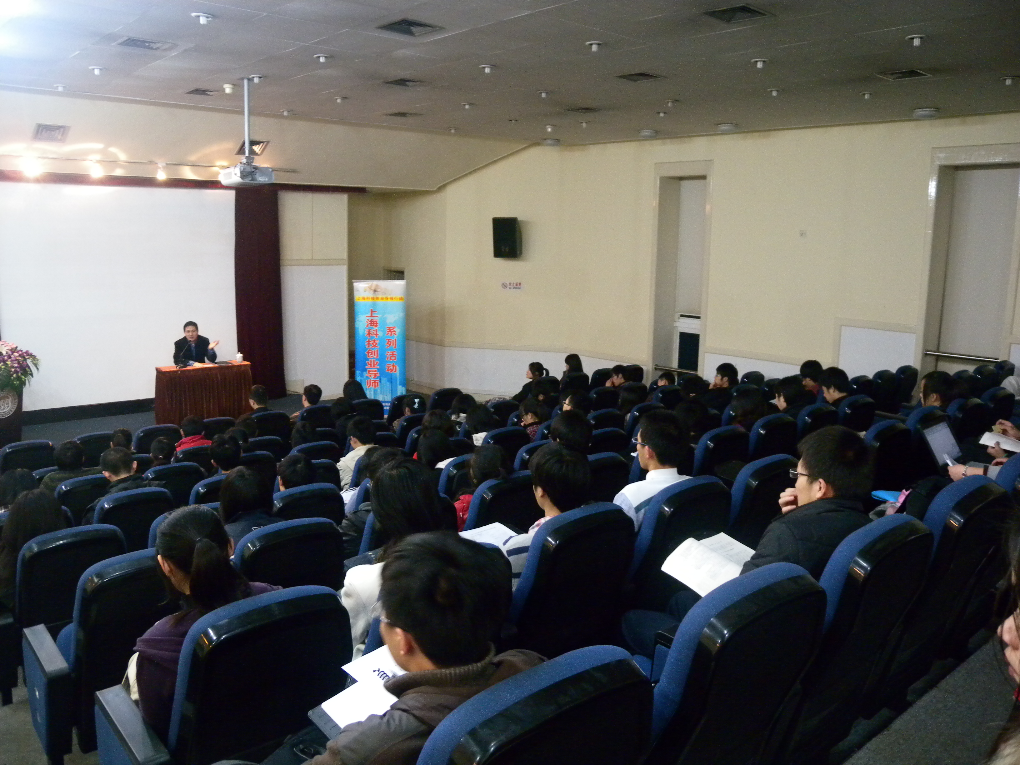 11月30日晚,一场主题为“我创我未来”的创业导师校园行讲座在同济大学四平路校区逸夫楼举办,活动由YBC杨浦办、上海同济科技园孵化器有限公司和同济大学团委创业者协会联合主办,来自同济大学的三百多名具有创业热情的青年学子现场接受了一场创业理想的洗礼。担任YBC杨浦办创业导师的上海复旦量子创业投资管理有限公司总裁鲁育宗与大家分享了他的创业经历,结合自身经验关于当前的创业环境和创业者应具备的创业素质进行了精彩演讲,并以亲身经历凝练的创业心得作为建议,告诫现场的潜在创业者要理性创业、持久创业。