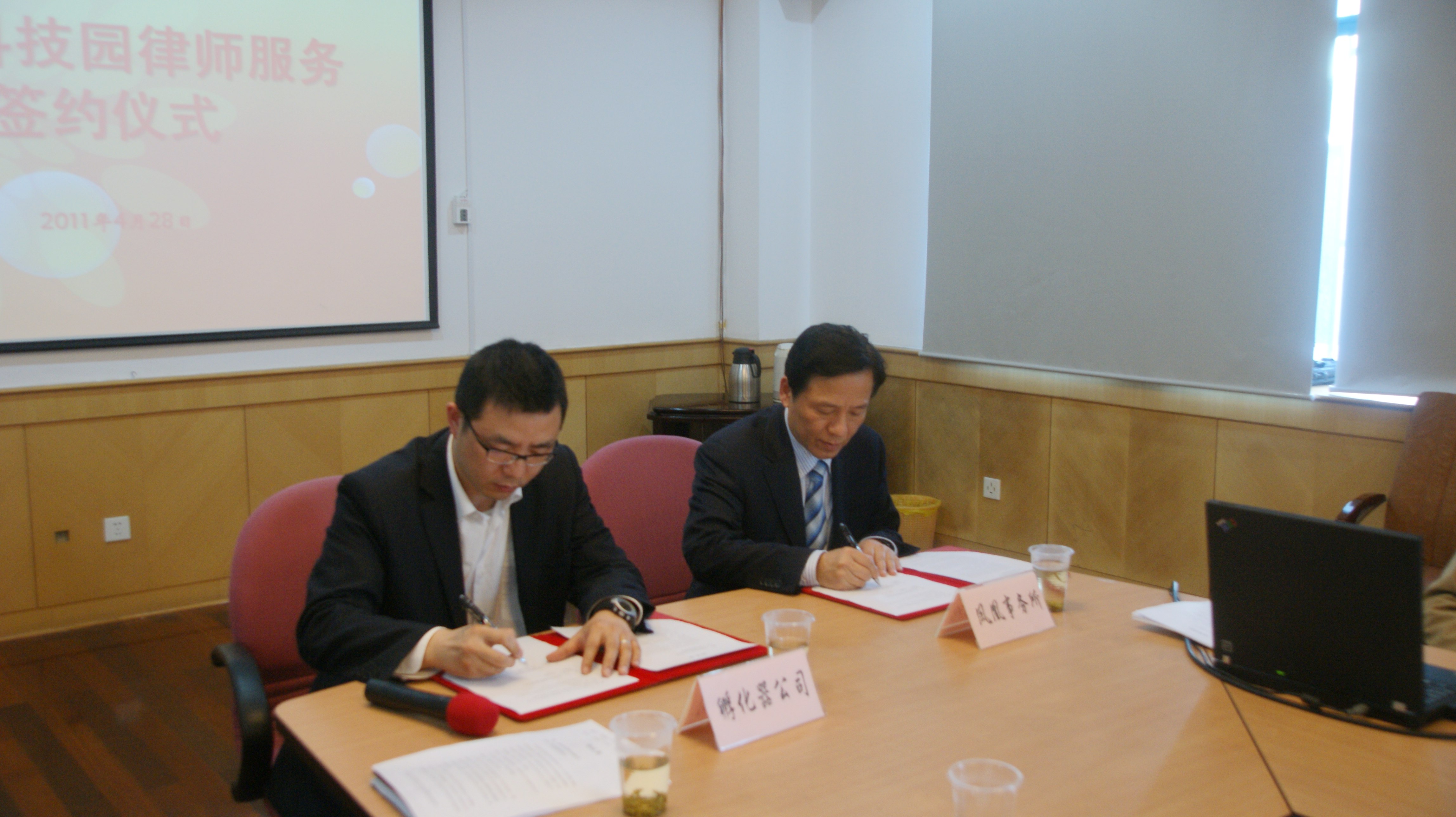 4月28日下午,“同济科技园律师服务签约仪式”在赤峰路孵化基地举行,上海市凤凰律师事务所主任常国旗与上海同济科技园孵化器有限公司副总经理赵念共同签署了共建协议书。杨浦区司法局公律科科长贡建荣、上海同济科技园孵化器有限公司刘方策副总经理出席本次签约仪式并致辞,园内数十家企业参加见证了这一时刻。