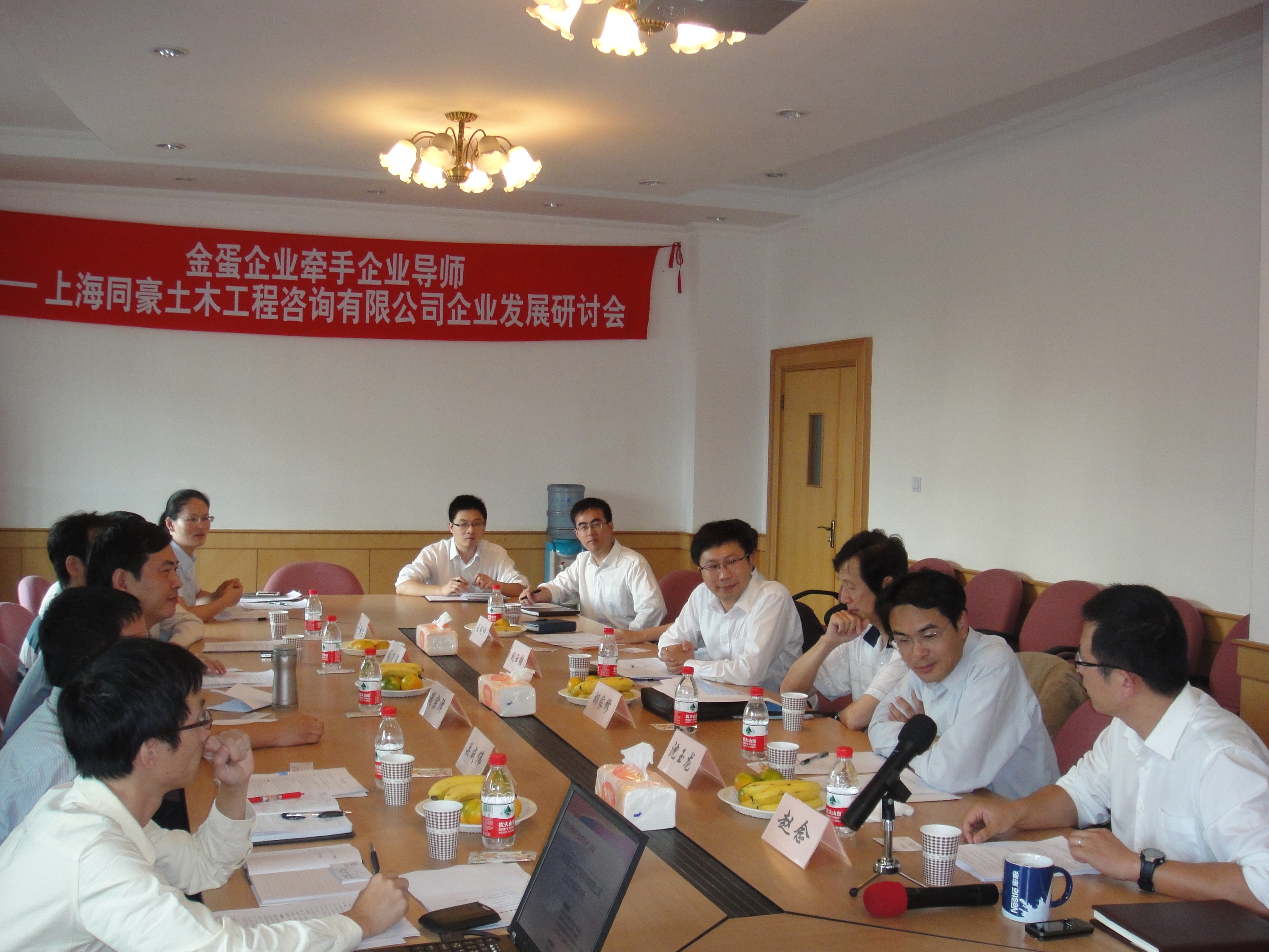 为落实上海市科委服务创新政策,提升孵化器的服务能力及服务水平,加快优质企业发展步伐,9月22日下午,创业导师牵手金蛋企业——上海同豪土木工程咨询有限公司企业发展研讨会在赤峰路孵化基地召开,本次会议由上海同济科技园孵化器有限公司副总经理赵念主持,来自战略管理、企业管理、资本和软件行业营销领域的四名创业导师出席了会议,同豪公司总经理周宗泽携公司主要负责人参加了此次研讨会,双方就同豪公司今后的发展方向和转型策略展开了深入的讨论。