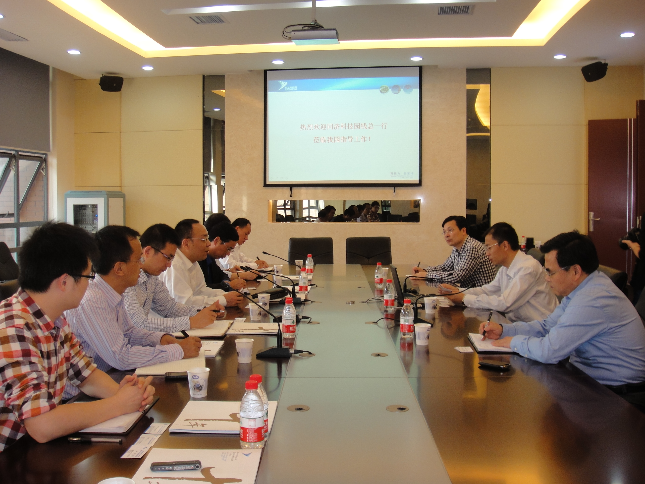 图为武汉华工大学科技园总经理常学武等人与我方交流