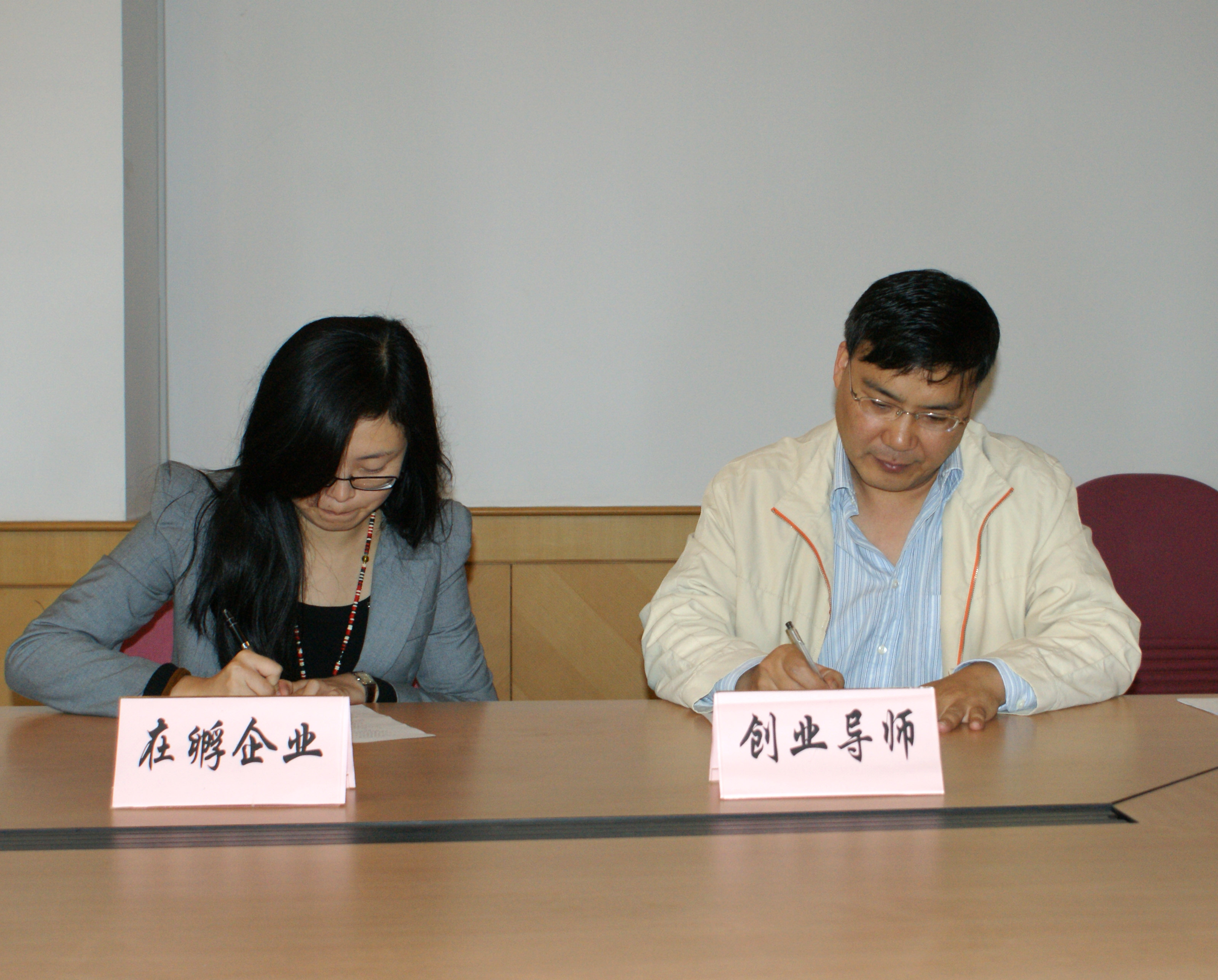为帮助创业企业应对创业过程中遇到的问题,增强企业的应变能力和抗风险能力,同济科技园大力落实《2011年上海科技创业导师工作实施计划》,积极推进创业导师和在孵企业的携手签约,2011年10月20日上午,“同济科技园创业导师签约暨孵化企业手牵手仪式”在赤峰路孵化基地举行,上海市科技创业导师、同济大学经济与管理学院工商管理系教授叶明海、上海同济科技园孵化器有限公司与与同济科技园孵化企业上海神典信息科技有限公司、上海同弈交通科技有限公司签署在孵企业指导协议书。上海同济科技园孵化器有限公司副总经理赵念及相关企业联络员出席此次活动。