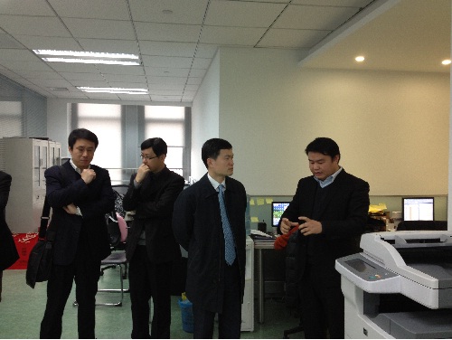 方星海主任一行在新眼光公司董事长汤德林的陪同下参观了公司的办公及研发场所,并在公司会议室进行了座谈,汤德林董事长向方星海主任一行介绍了新眼光的发展历程、取得的荣誉和科研成果以及公司目前经营状况及发展规划。