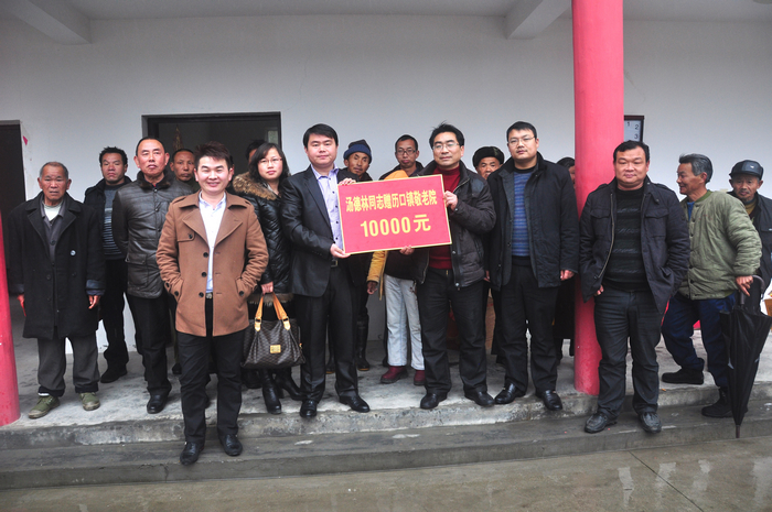2月17日,我园区青年企业家新眼光董事长汤德林回老家安徽省祁门县历口镇过年期间,在历口镇政府工作人员的陪同下,冒着寒风冷雨来到历口镇敬老院,看望慰问这里的孤寡老人,并现场向敬老院赠送1万元慰问金。
