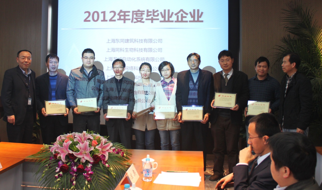 上海同济科技园孵化器有限公司总经理钱学标在开幕致辞中指出,2012年度同济科技园紧紧围绕质量目标,突出重点,扎实工作,通过深化各类平台服务,得到了令人瞩目的成果,园区企业在园区的带领和指导下获得质的发展,在技术创新、新产品开发、企业管理、产品化、市场化等方面进步显著。会上对2012年度成功毕业的9家孵化企业及14家年度优秀企业进行了表彰,与会领导对这些企业分别颁发了毕业证书及奖牌。孵化企业毕业是通过上海市科技创业中心认证备案,需孵化后达到自主知识产权、营业收入、收购上市等方面严格的毕业标准;而园区的企业评优针对不同发展阶段的企业群体,综合考量企业的贡献程度、经营水平、成长能力、创新能力及对园区各项工作的支持程度,本届共设置了六个相关奖项(具体见下文)。上海科技企业孵化协会副理事长范伟军为企业毕业评优典礼发表总结性发言,对这些企业寄予了殷切希望,祝愿这些企业能够勇攀高峰、再创佳绩,同时也对园区提出了更高的要求,园区将继续关注创业企业的成长、给予扶持。
