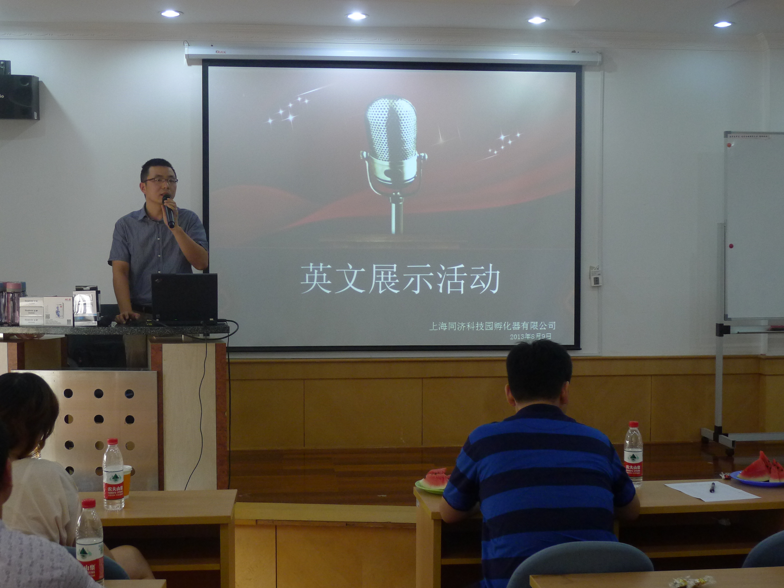 8月9日,我公司组织举办了员工英文展示活动,来自各部门的13位员工走上舞台,通过英文朗诵、电影配音、猜谜语、演唱英文歌等多种形式展现个人不同的风采。本次活动举办之际正值公司为期4个月的商务英语培训课程接近尾声,员工的风采展示为英语培训课程划上了圆满句号。