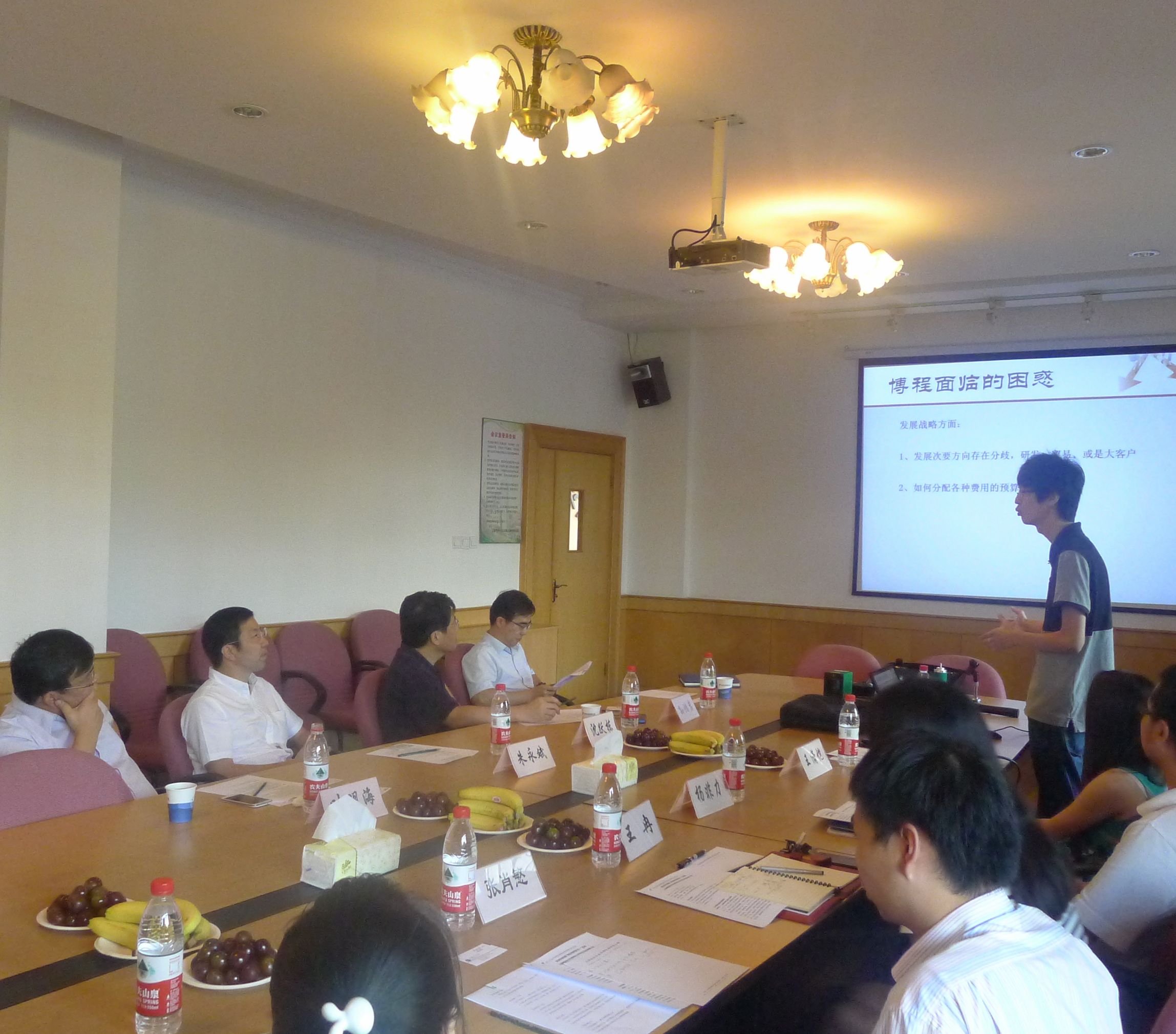 上海博程电子科技有限公司成立于2011年,是一家受到同济大学生创业基金资助的大学生创业企业。作为专业的工控系统设计单位与电子器械的一站式分销商,博程电子不仅为客户提供专业的工控系统设计、配套以及电气机械产品的销售服务,同时也提供针对其产品应用的指导与培训。公司创始人王潇凯向导师们详细介绍了公司情况,并就企业的中长期战略、目标客户定位、销售渠道开拓、知识产权保护和企业文化等目前制约企业发展的突出问题与专家进行了深入的交流。