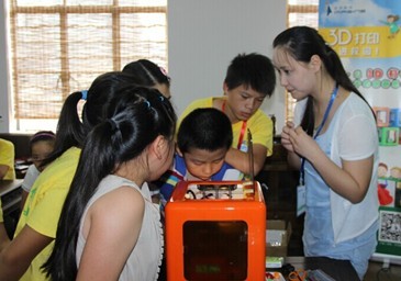 在实践课上,迈济公司的工作人员首先为学生们讲解了3D打印的基本原理,并配合了一部自制的动漫片,让学生们更好地理解3D打印技术。随后,学生们分组进行了一场用3D打印的立体“心”拼装比赛,目的是通过比赛,促进积极动脑思考、积极沟通及团队配合的能力。每个小组的学生们思考和动手能力都非常强,进过紧张的比赛,其中一组学生在规定时间内完成了拼图,获得了冠军,大家开心地分享着团队合作的喜悦。
