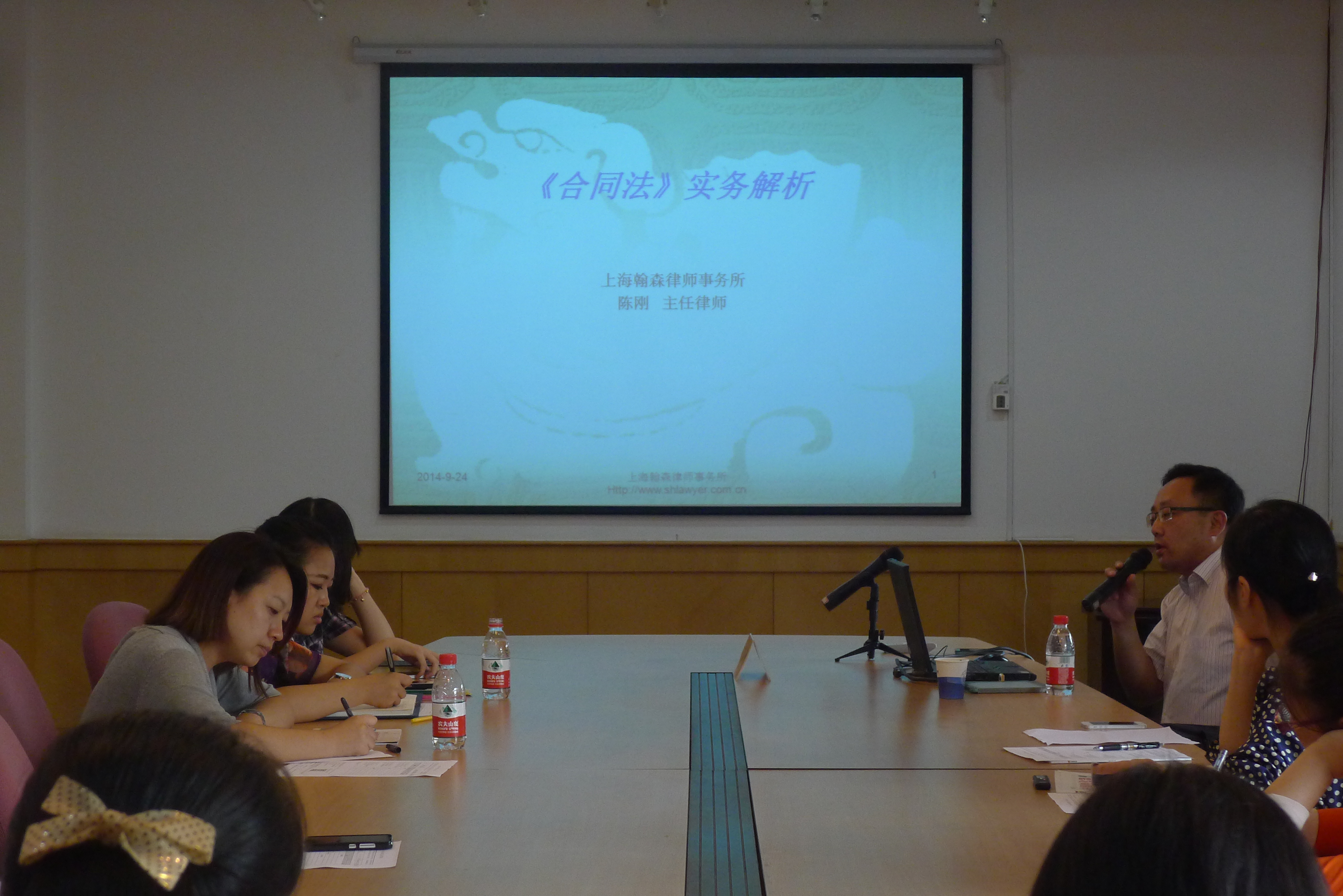 9月24日下午,同济科技园法律活动周-主题培训之创业企业合同法律风险防范讲座在赤峰路孵化基地202会议室举行。讲座特邀上海翰森律师事务所合伙人、主任律师,同济科技园合作法律顾问陈刚老师亲临园区授课,吸引了近20位企业相关人员参加。