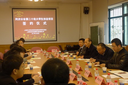 1月6日,上海市大学生科技创业基金会同济分基金第二十批大学生创业项目签约仪式在园区举行。十三个创业团队二十余人参加了签约仪式。上海同济资产经营有限公司总经理高国武、副总经理戴大勇,上海同济科技园孵化器有限公司总经理钱学标、常务副总经理赵念、副总经理金路等相关领导出席仪式。同济分基金和科技园孵化器各个服务平台的相关负责老师以及同济科创联合会代表参加仪式。