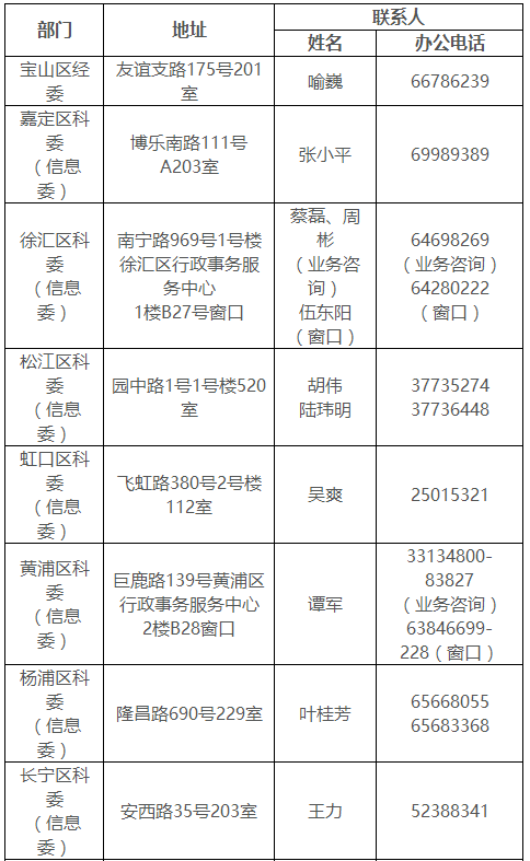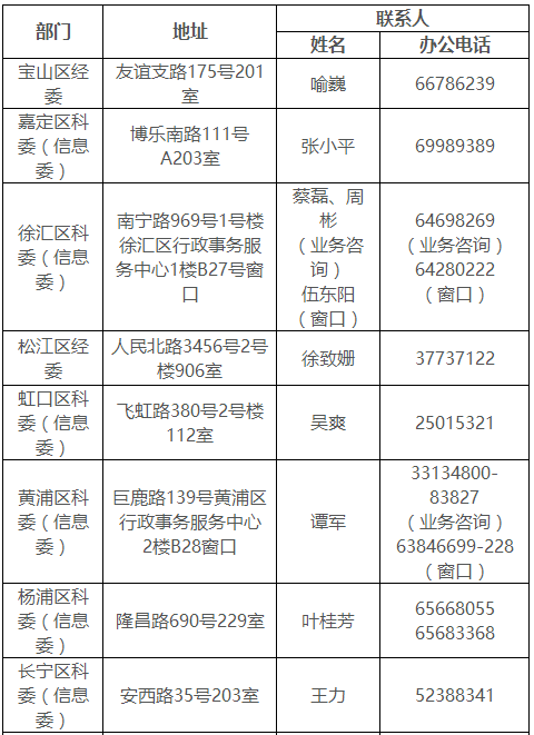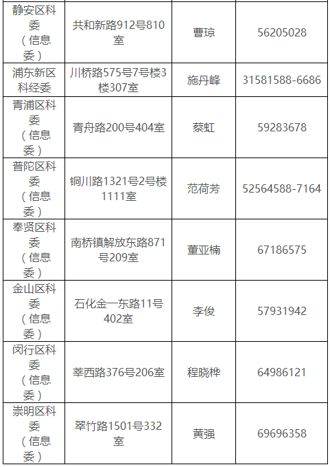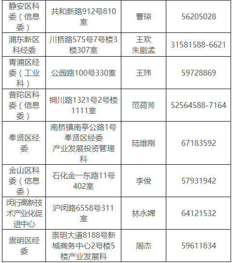 (四)各区软件和信息服务业主管部门联系方式