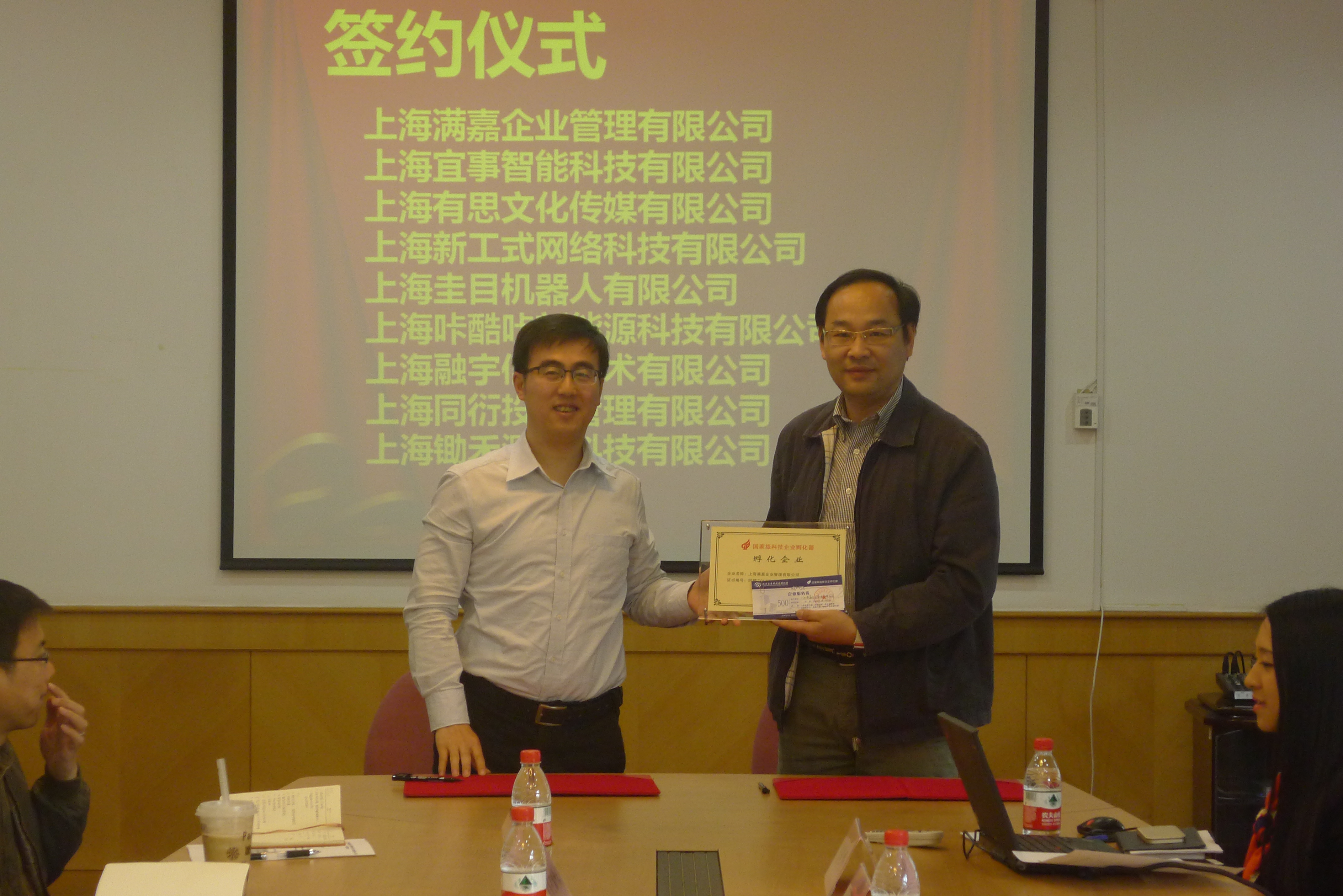 活动由企业发展部副经理潘瑾炜主持,分两部分进行。第一部分是企业入孵仪式。由孙鸿岩首先发表讲话,对2017年第一批新入孵的九家企业表示祝贺。接着,孙总助就园区总体情况及孵化体系作了简单介绍,他介绍说,园区目前注册企业1400余家,2003年被科技部、教育部授予“国家级大学科技园”,2005年被科技部授予“国家级科技企业孵化器”,并荣膺国家科技部A类国家级科技企业孵化器,连续七年荣膺上海市科技孵化器考评“优秀”单位,这些荣誉的取得都离不开园区企业的支持;他表示,入孵企业是我园区从提交入孵申请的企业中通过实地考察企业实力,通过层层筛选出符合入孵条件,并具备良好发展前景的企业进行签约,企业入孵后园区将配备联络员,有针对性的提供企业各项服务需求,加深园区和企业之间的关联,助推企业快速发展;随后,在与会人员的共同见证下,孙总助与上海满嘉企业管理有限公司、上海宜事智能科技有限公司、上海有思文化传媒有限公司等九家企业签订了入孵协议。