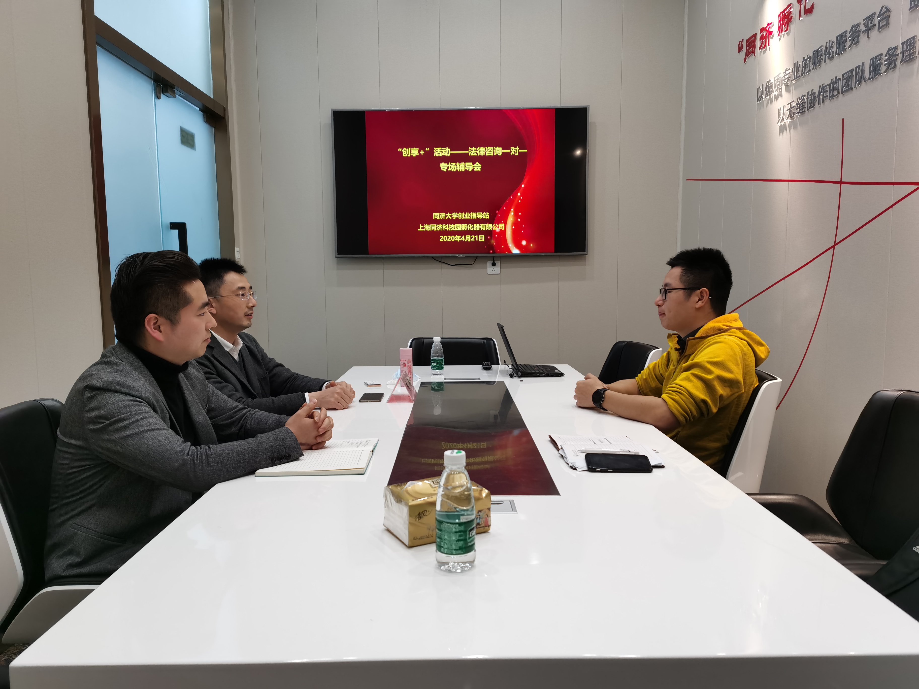 4月21日下午,由上海同济科技园孵化器有限公司及同济大学创业指导站共同主办的“创享+”活动之法律咨询一对一专场辅导会在同济科技园孵化器基地顺利举行。本次辅导会主要针对同济分基金资助期内企业上海未丝体育科技有限公司关于股权结构的一些法律疑问进行一对一指导,孵化器基地创业辅导员上海邦信阳中建中汇律师事务所合伙人律师李茂针对企业提出的问题进行了细致、耐心地解答,大学生创业服务部副经理姜森参加辅导会。