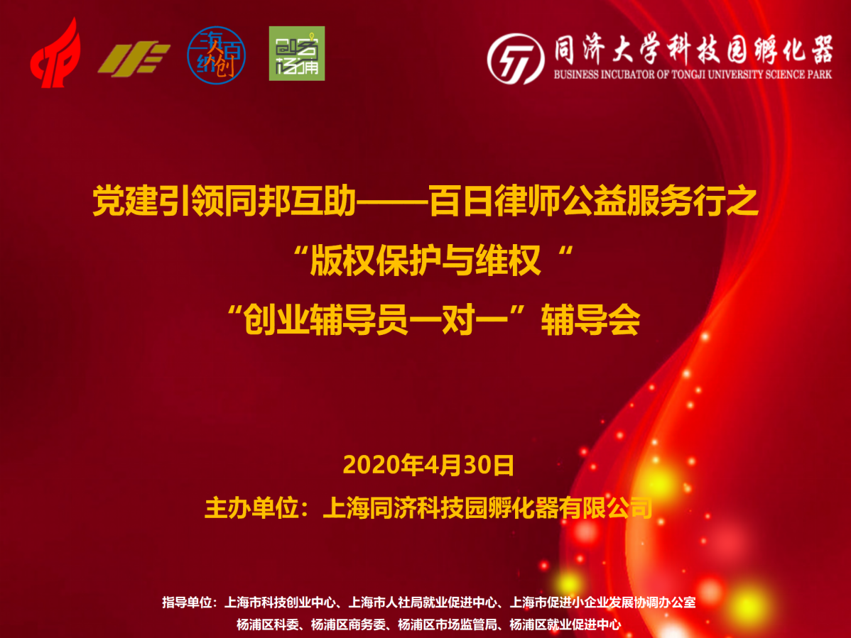党建引领同邦互助——百日律师公益服务行之 “版权保护与维权” &“创业辅导员一对一”辅导会在同济科技园孵化器基地成功举办