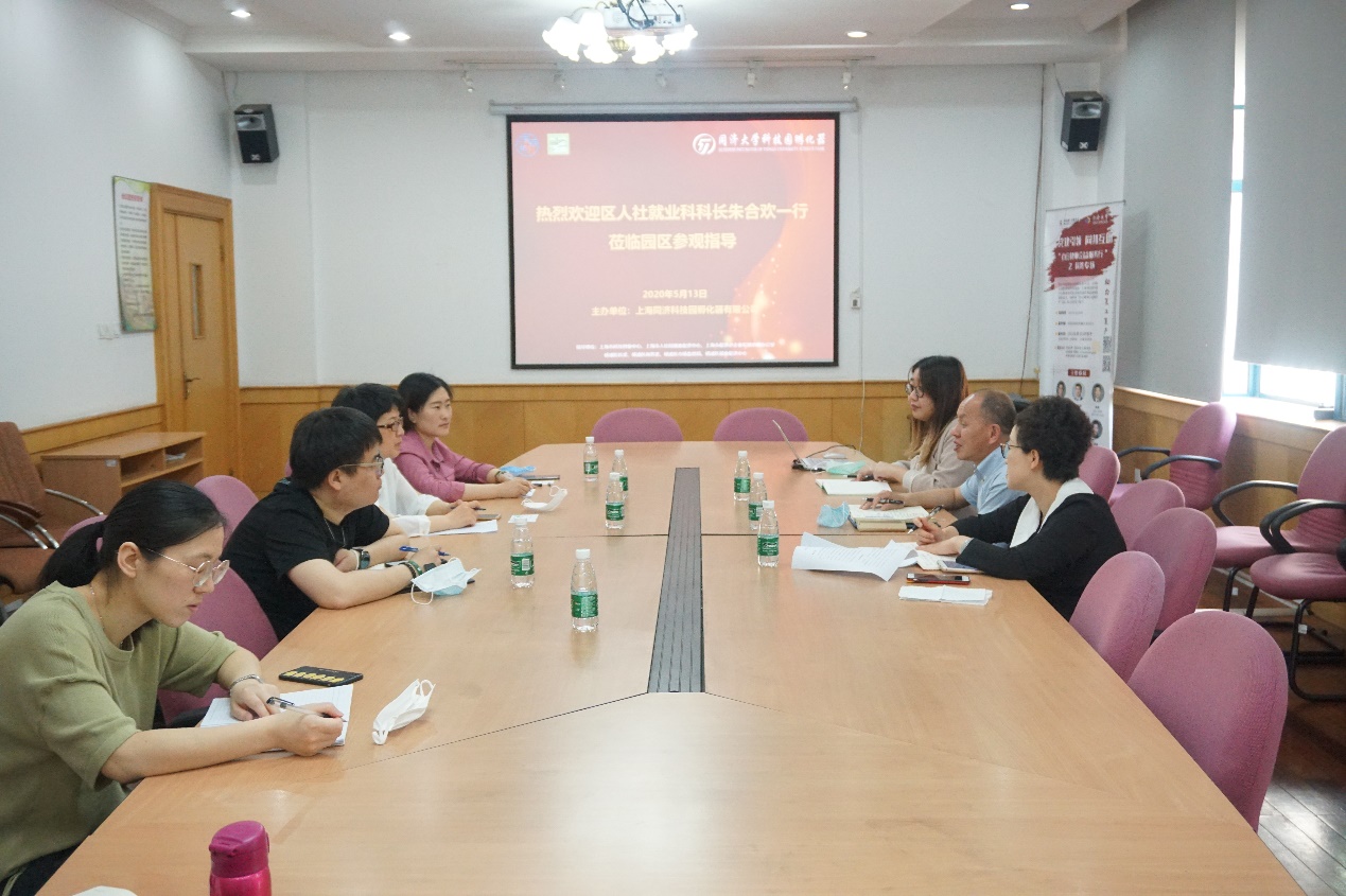 2020年5月13日上午,杨浦区人社局就业科科长朱合欢带队一行莅临同济科技园及创业谷孵化示范基地走访调研,上海市同济科技园孵化器有限公司总经理助理徐欢、孵化服务部经理梁洁携部门工作人员接待。