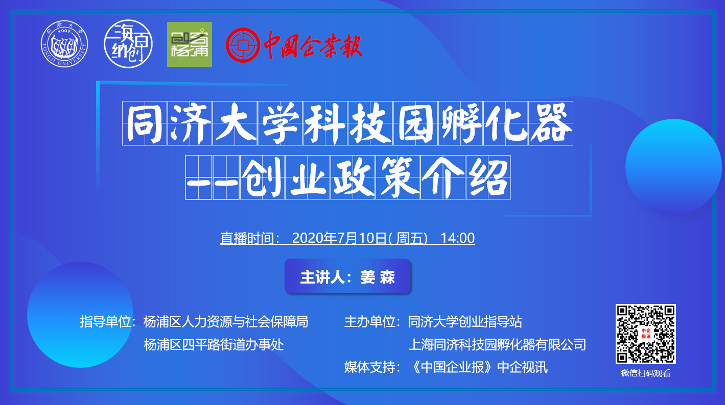 同济大学科技园孵化器--创业政策介绍线上直播活动